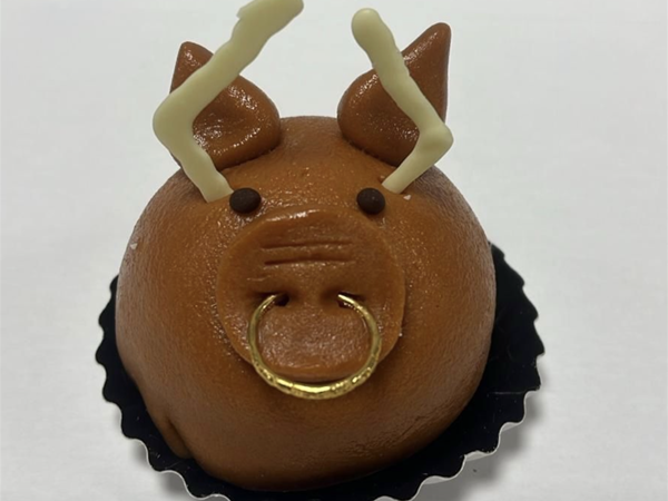 Het gebakje van Oss Marsepein gebakje op basis van slagroom met aardbeien en een vleugje magie. op een krokante bodem
